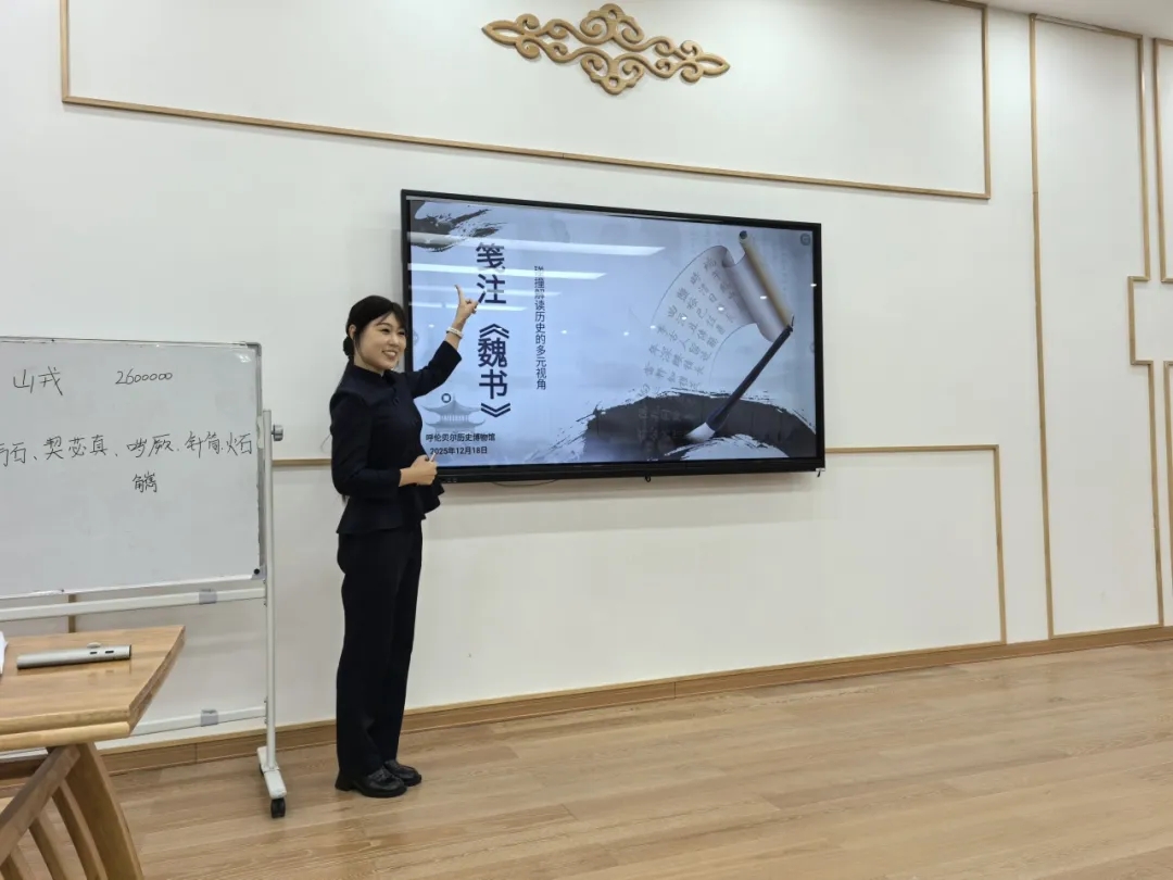 为进一步提升讲解团队专业度,优化游客参观体验,打造高素质文旅服务团队,以饱满的热情迎接2026年度讲解接待工作,自2025年11月20日起,呼伦贝尔历史博物馆社会教育部精心组织一周一次的学习周期,有效利用淡季开馆时间,将每周四上午10点定为“学习分享会”,顺利推进15期,干货满满、收获颇丰。以学促讲,互学共进,讲解员们打破知识盲区与表达局限,深耕不辍,蓄力前行,互相借鉴实战技巧,吸收彼此讲解精华,摆脱千篇一律的讲解内容,只为给游客带来更有深度、更有吸引力的参观和听讲体验。15期分享各有侧重,涵盖历史文化、非遗民俗、讲解礼仪、发声技巧等多个维度,为讲解服务提质增效筑牢根基。