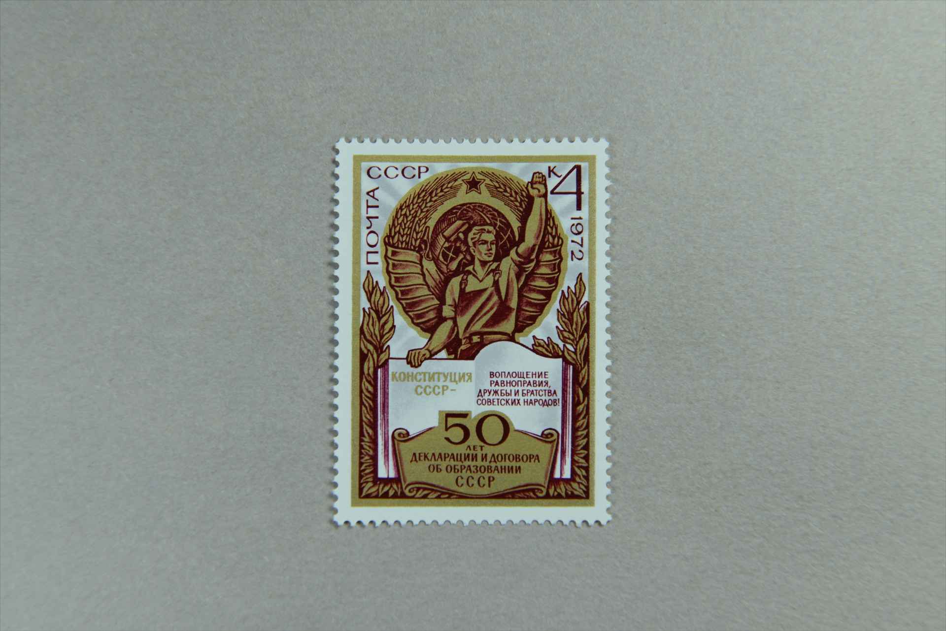 前苏联苏维埃共和国联盟成立50周年工人举手赞成苏联宪法邮票